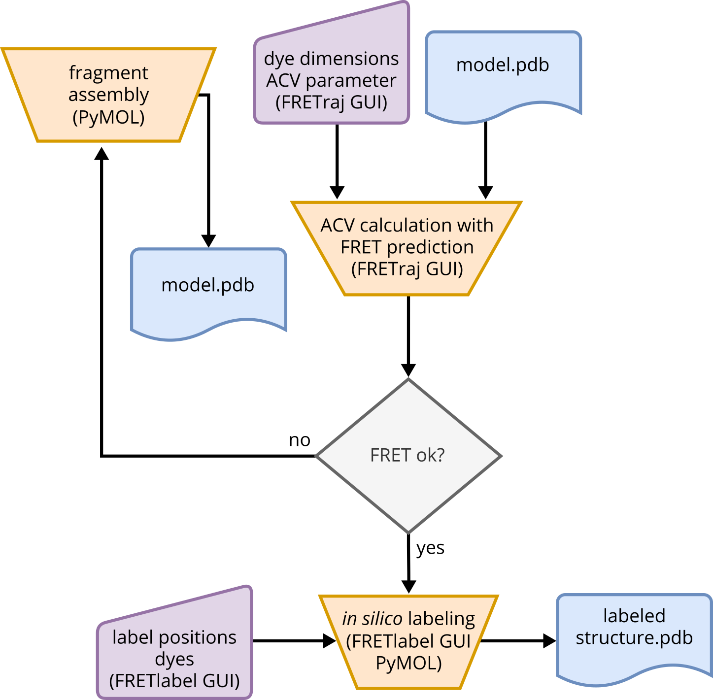 Fig. 6 Guideline for the use of FRETraj in PyMOL and the potential evaluation of initial structural models by FRET.#