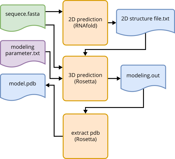 Fig. 4 De novo tertiary structure prediction using RNAFold and Rosetta. Input, output flow using automated methods.#