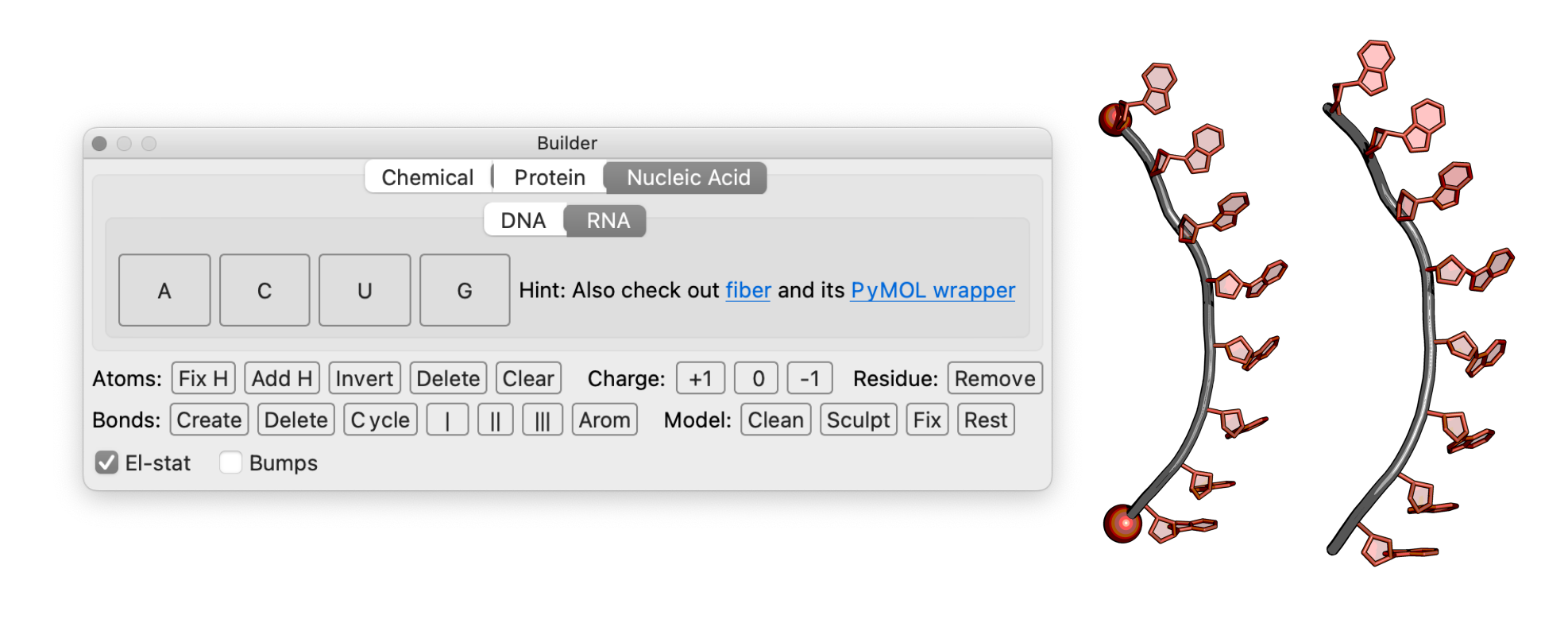 Open the PyMOL Builder and select “Nucleic Acid” and “RNA”.